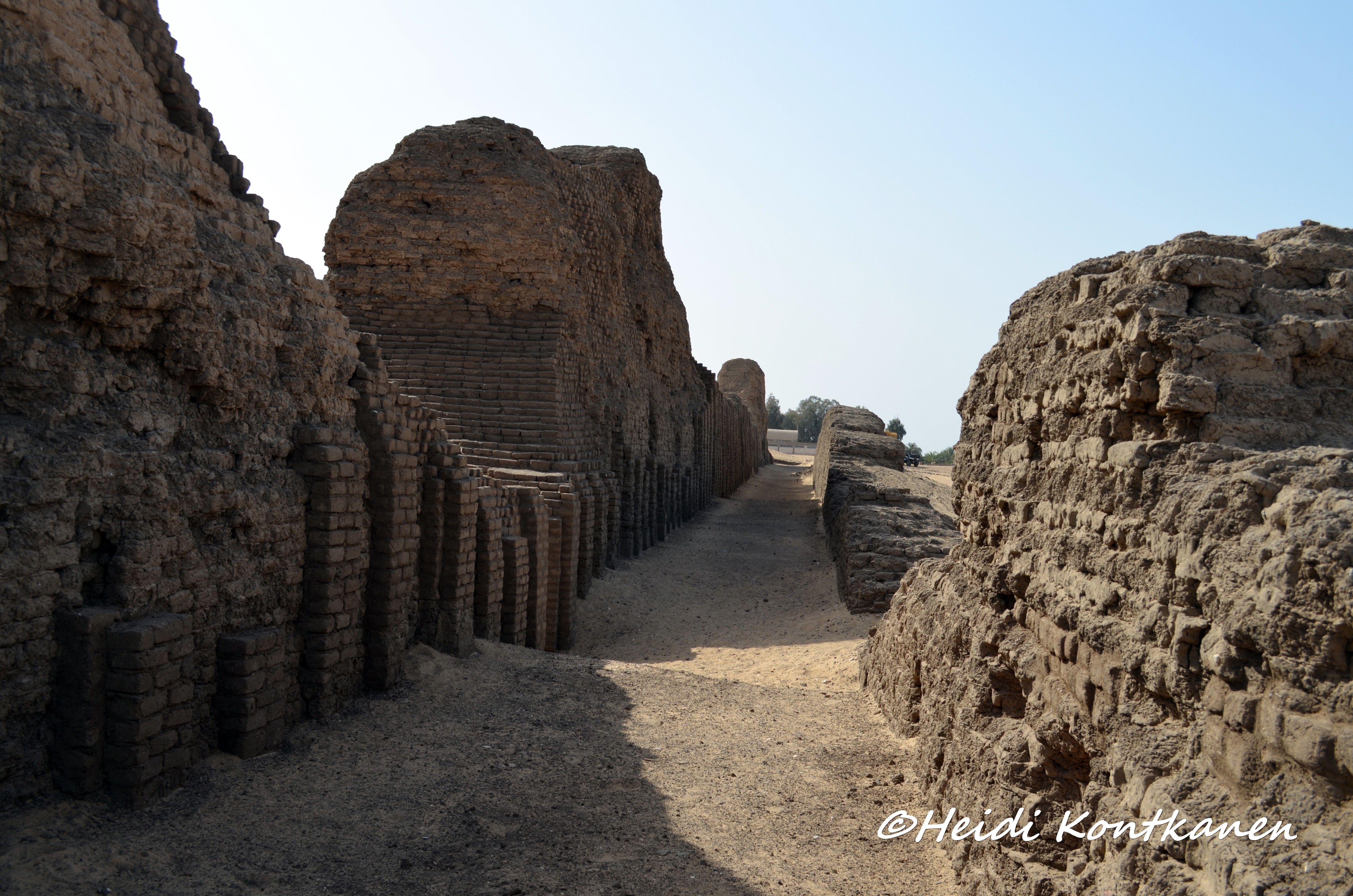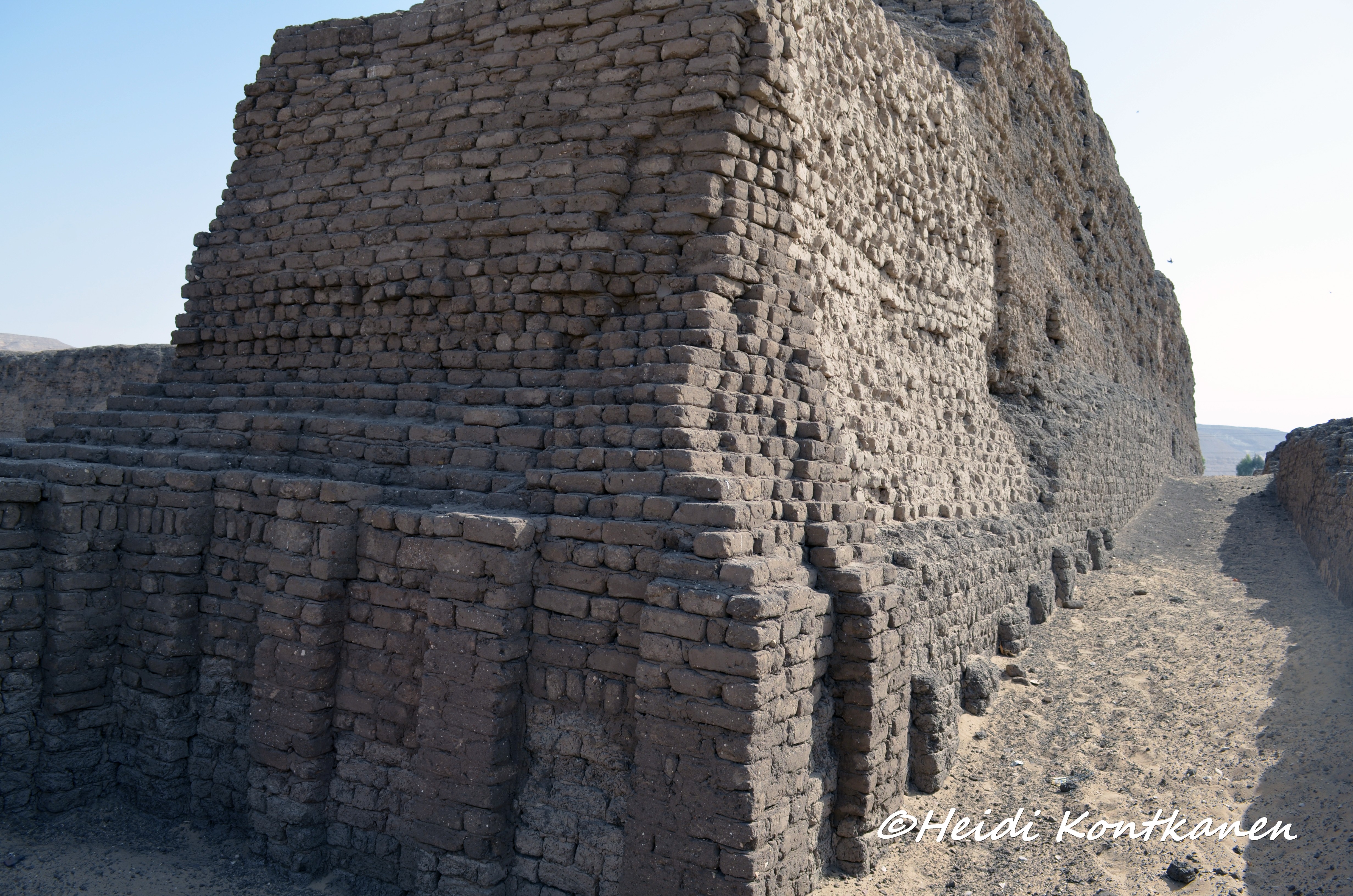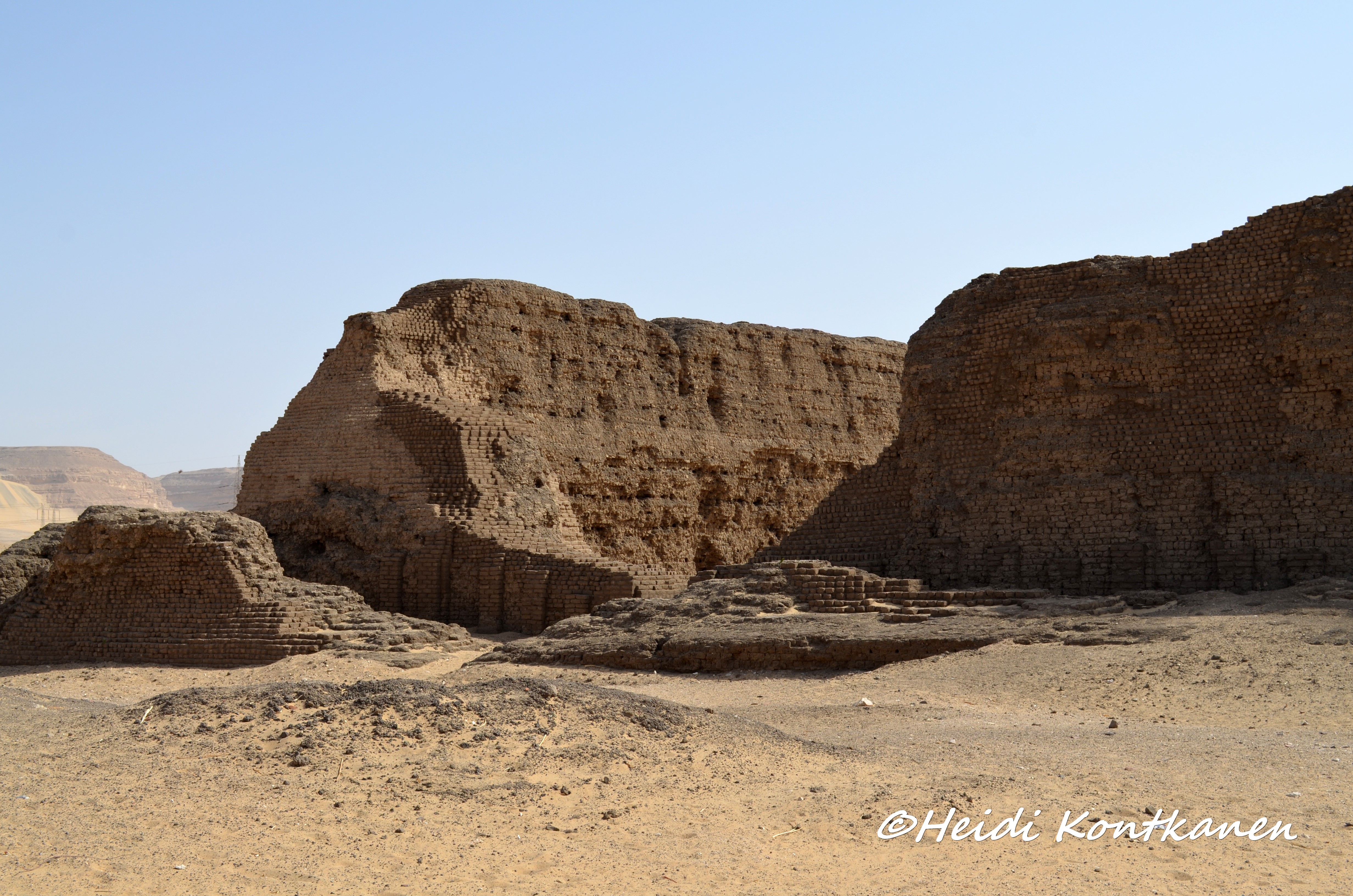 The facade of the inner wall was niched, imitating a royal palace facade. This and the enclosure wall around the pyramid complex of Djoser in Saqqara (3rd dynasty)