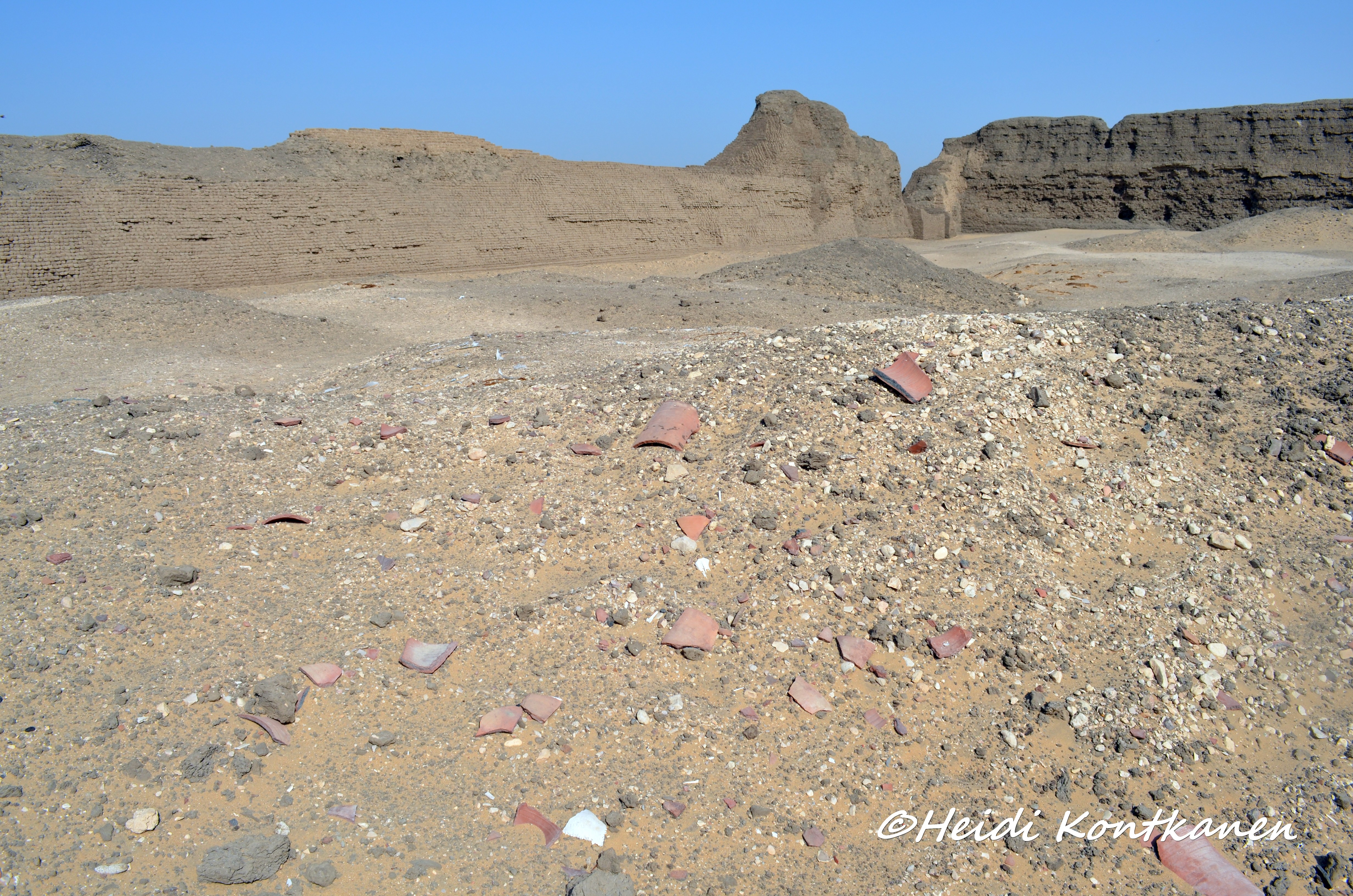discovered a large mound of sand and gravel covered with mud brick within the enclosure