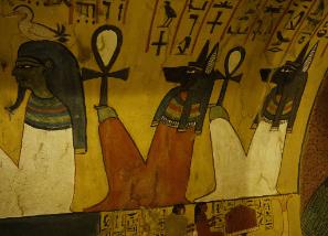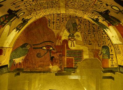 There are sixteen deities on thevaulted ceiling of the innermostburial chamber, eight on each side.On the right side, there are:Osiris, Isis and Nut…