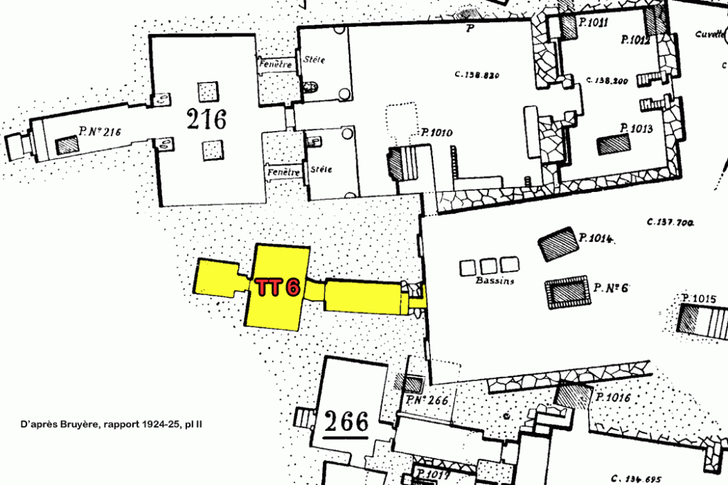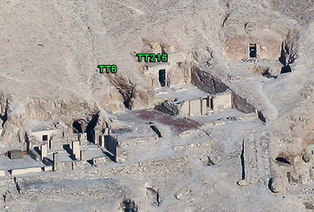 It should be noted that tomb TT216, adjoining that of TT6, is that of another Neferhotep, son of Nebnefer thus grandson of the TT6 Neferhotep, which is the largest and best located in the necropolis of Deir el-Medina. The Neferhotep of TT6 will be referred to as Neferhotep (I) and his grandson as Neferhotep (II).