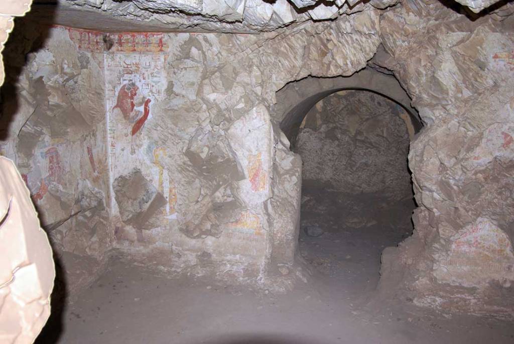 This was originally entered by a shaft in the courtyard. This may have been modified into a ramp (see the area photo), but can anyone confirm this? The entry to the chamber is on the east side (see tomb plan). The chamber is decorated with sketches on a white background. No photos are currently available.