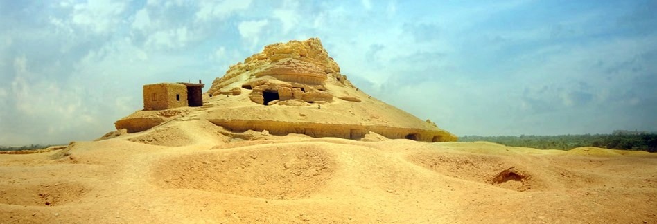 The Mountain of the Dead is located 2 km from the Siwa region of Marsa Matrouh Governorate and was discovered by chance in 1944 during the Second World War when the people of Siwa took refuge in the mountain and discovered the tombs in it which is a conical shape with a height of 50 meters and consists of limestone soil and is considered an archaeological cemetery This mountain is distinguished by its amazing view, from below to above, it is tombs of the dead carved in the form of a beehive of stone in the form of regular and consecutive rows in a geometric shape similar to the shape of the ancient oasis. The history of this ancient cemetery dates back to the 26th Dynasty and extends to the Ptolemaic and Roman era. These tombs combine in their design between ancient Egyptian art and Greek art. This merger arose as a result of mixing cultures. Some of these tombs are found at great depth and each cemetery is a rectangular vestibule that ends into a wide square courtyard and this courtyard is branched from a group of holes dedicated to the status of the dead. The most beautiful tombs present are the cemetery of Si Amoun, which belongs to the ancient Greeks, who used to follow the ancient Egyptian religion. He lived in Siwa and was buried there according to that religion. This cemetery was well preserved. This cemetery has a group of prominent reliefs and includes a drawing representing the goddess Nat and it is standing under the sycamore tree. Then another cemetery called the cemetery cemetery and named by this name in relation to the inscriptions engraved on it which is a yellow crocodile shape representing the Subic god and this cemetery is a structure similar to a component cave Of three rooms and the owner of this cemetery has not been identified yet. Another cemetery is called Thebre Pathot, which is decorated with charming drawings and engravings dyed in red, which are dominated by pottery used in Siwa until now, and there is a stone sarcophagus placed on the floor of the burial chamber. In its entirety, many, many landmarks and treasures of the Sahara Desert.