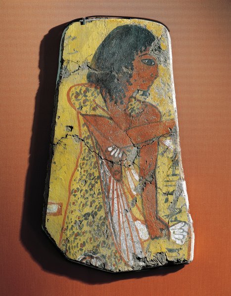 Fragment of a painting on lemon wood depicting a priest during a burial ceremony