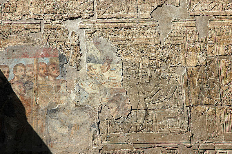 plastered over during Roman times with colorful images of roman officials and Copts looking to the now lost image of the Emperor.