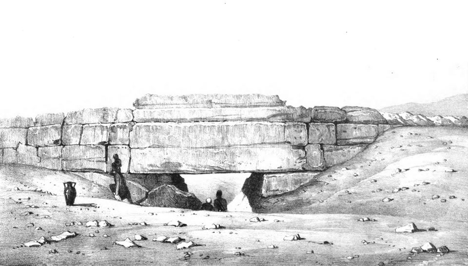 the sides slope down and away from the center — a common feature of ancient roads.Along the length of the south side of the wall east of the gate, we cleared a ramp-like slope on the surface of an embankment of limestone chips. This mason’s debris must have been waste from building the wall.It also may have been used as a ramp to drag the massive lintels up over the top of the gate.
