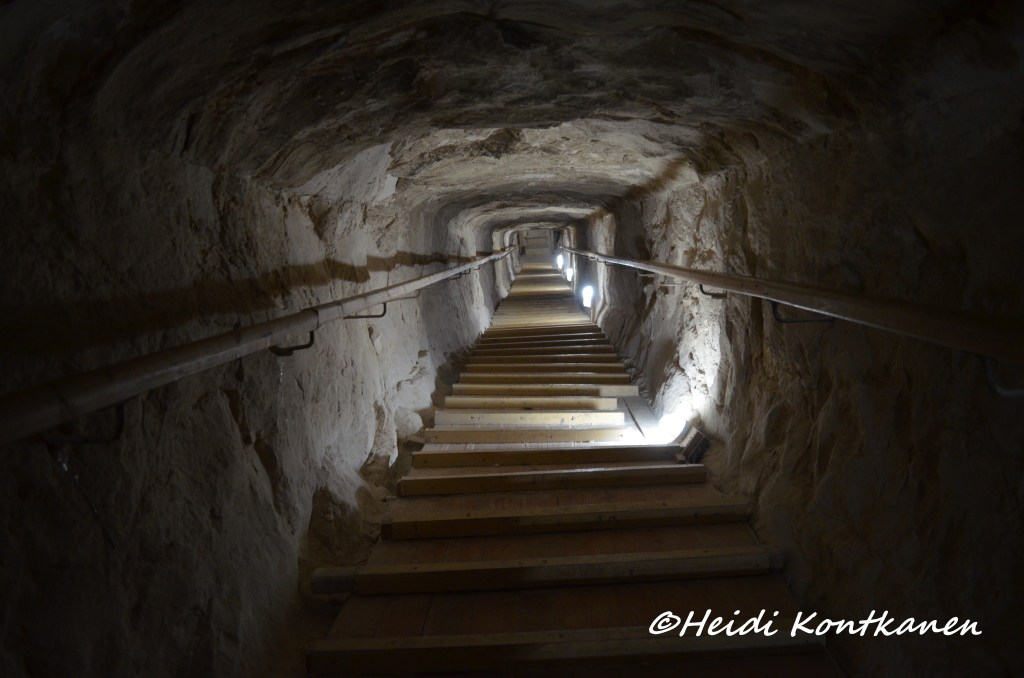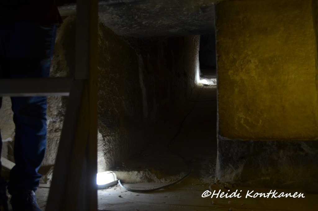 The second passage runs from the west side of the pyramid, through portcullis blocking systems,